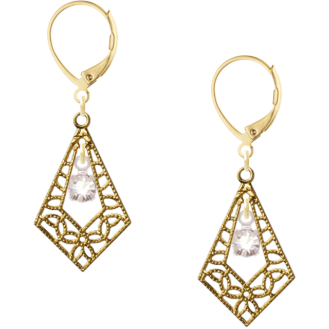エレガント 透かし模様 ゴールドピアス ロジウムチャーム付き